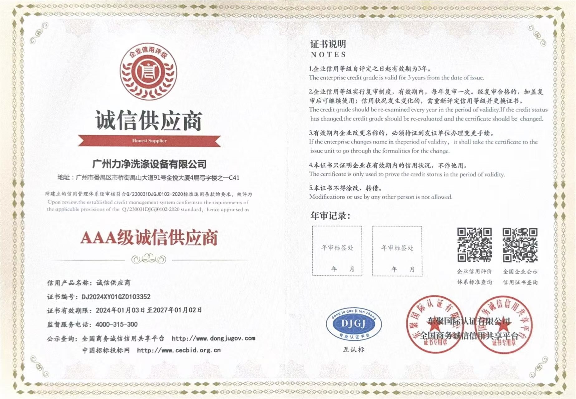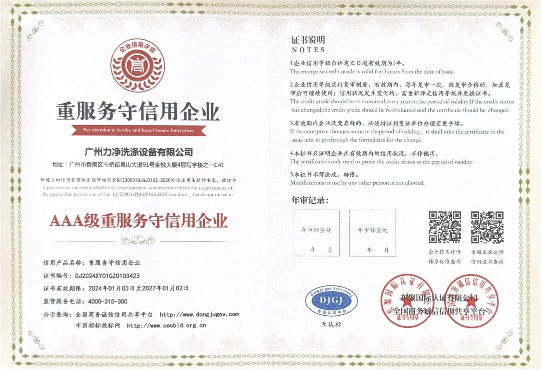 • AAA級(jí)重質(zhì)量守信用單位